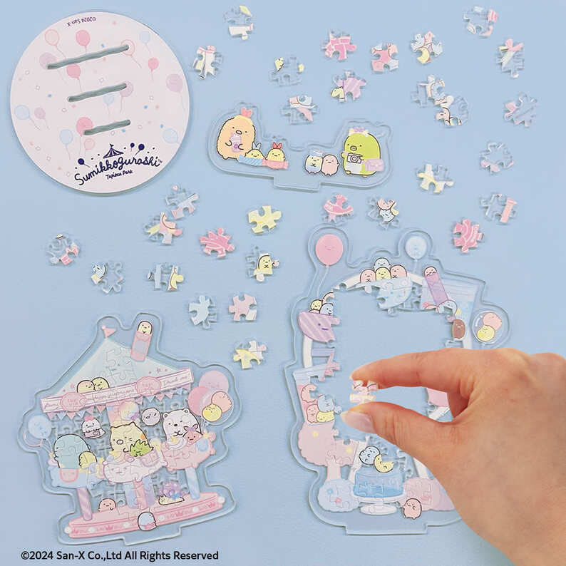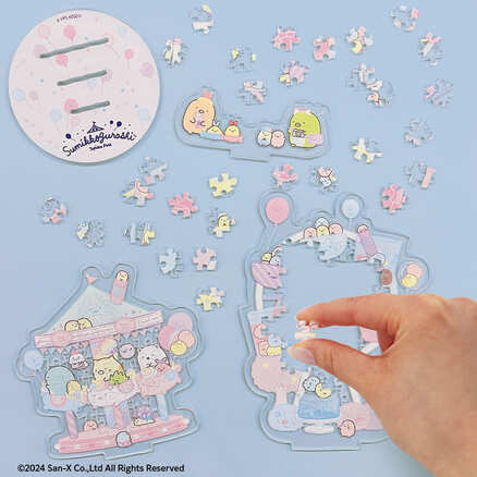 2枚のパズルと1枚のパーツを組み合わせアクリルスタンド風にディスプレイして楽しめます!