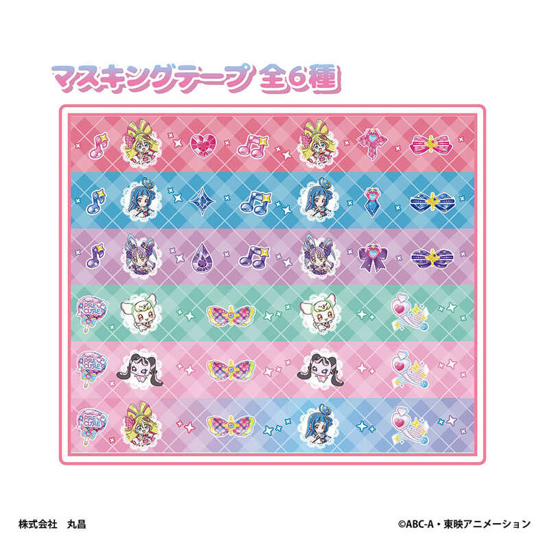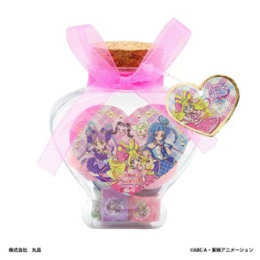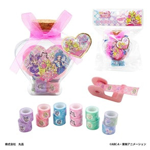 「キミとアイドルプリキュア♪」がステーショナリーになりました! ハート型のボトルにプリキュアのかわいいミニマスキングテープとテープカッターが入っています。 [セット内容] ケース×1個、マスキングテープ×12個(6柄各2個)、テープカッター×1個 ●パッケージサイズ:約W115×H160×D45mm ●対象年齢:6歳以上 (C)ABC-A・東映アニメーション