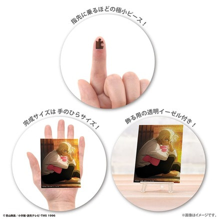 『名探偵コナン』のキャラクターたちと星のモチーフがロマンティックな印象を与えるシリーズ。 星形のクッションを抱き誰かに目線を送る安室透。 ロマンティックな冬の一夜を想像させます。 プチパリエシリーズはピース1つの大きさは1cm以下のスモールサイズ。 手のひらに乗るくらいの小さなイーゼルに可愛らしく飾ることが出来るミニチュアサイズのジグソーパズルです。 プラスチック製なのでノリ不要、飾る為のイーゼル付属です。 ●ピース数:150ピース ●完成サイズ:7.6×10.2cm ●付属品:ミニイーゼル