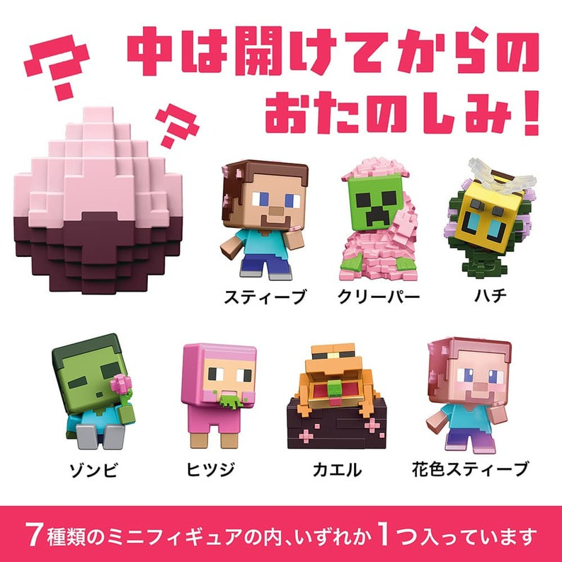 大人気シリーズのスポーンエッグが桜バイオームバージョンとして登場です。 中身がわからないブラインド仕様です。 様々なポーズをしたミニフィギュアは全7種類でレアフィギュアには花色スティーブもいます。 外のカプセルは台としてフィギュアを飾ることもできます。 ~ラインナップ(全7種類)~ ・カエル ・スティーブ ・ゾンビ ・ヒツジ ・ハチ ・クリーパー ・花色スティーブ ●パッケージサイズ:W57×H64×D57mm ●パッケージ重量:100g ●対象年齢:6歳以上 ●原産国:ベトナム ※全7種のうちどれか1つがランダムに入っています。複数お買い求め頂いても同じ絵柄が続けて出たり、ご希望の絵柄が出ない場合もございます。また、絵柄が重複しましても交換依頼はお受け致しかねます。 ©2025 Mojang AB. All Rights Reserved.