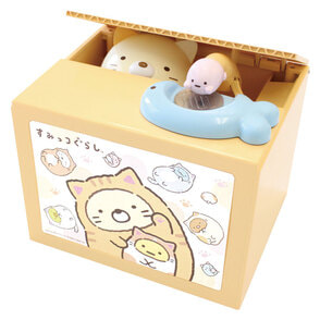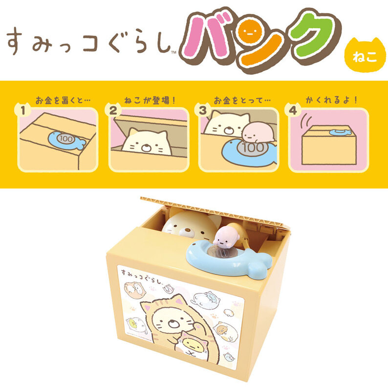 すみっコ達の金庫番「ねこ」と「たぴおか(ピンク)」が登場。