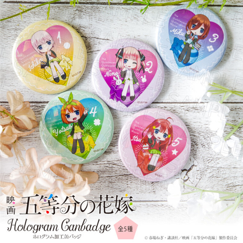 アニメグッズの定番商品が登場! ●サイズ:約φ57mm ●素 材:ブリキ ※画像はイメージです。実際の商品の色が多少異なる場合があります。予めご了承ください。 ©春場ねぎ・講談社/映画「五等分の花嫁」製作委員会