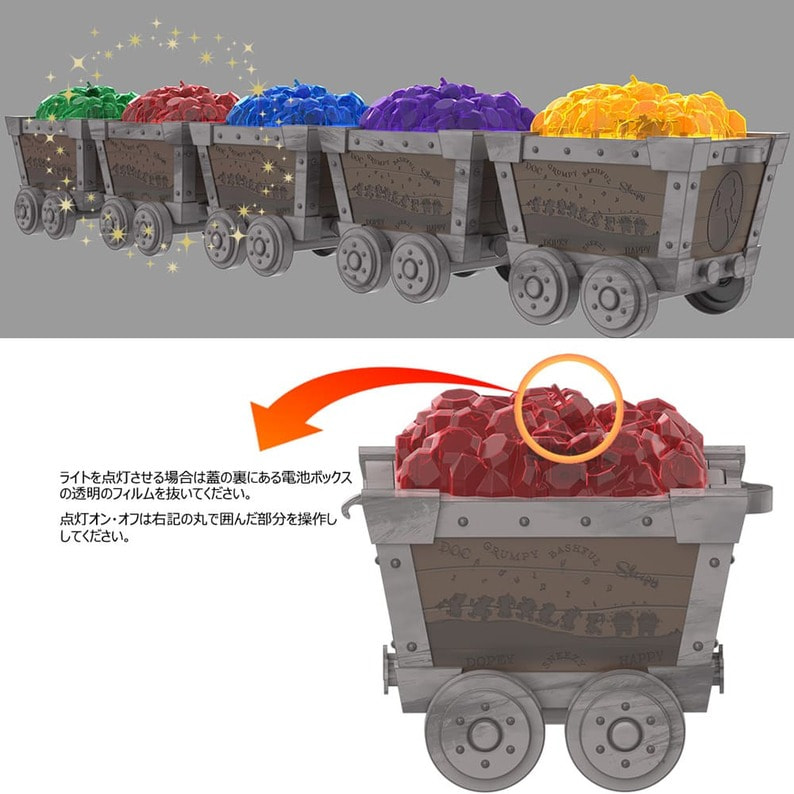 映画『白雪姫』(配給:ディズニー)より、カート型のポップコーンボックス。カートの側面には白雪姫や小人たちが描かれていてキュートなデザイン。小物を収納可能でジュエリーが光るギミックも搭載!