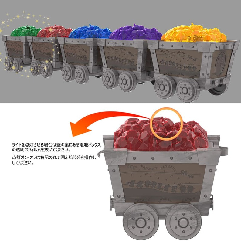映画『白雪姫』(配給:ディズニー)より、カート型のポップコーンボックス。カートの側面には白雪姫や小人たちが描かれていてキュートなデザイン。小物を収納可能でジュエリーが光るギミックも搭載!
