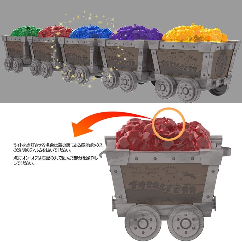 映画『白雪姫』(配給:ディズニー)より、カート型のポップコーンボックス。カートの側面には白雪姫や小人たちが描かれていてキュートなデザイン。小物を収納可能でジュエリーが光るギミックも搭載!