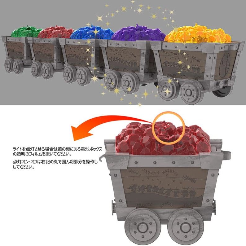 映画『白雪姫』(配給:ディズニー)より、カート型のポップコーンボックス。カートの側面には白雪姫や小人たちが描かれていてキュートなデザイン。小物を収納可能でジュエリーが光るギミックも搭載!