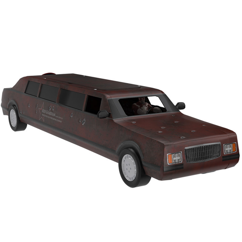 車体表面には銃痕のダメージ加工がされていて、運転席にはレッド・ガーディアンの姿も!