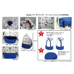 サンリオに2way仕様のバックパックが登場! リュックとして背負うかたちの他に、肩にかけるショルダータイプとしても使用可能です。 上下に分かれた収納がとっても便利! マチも広く、たくさんの荷物もすっぽり入ります! ●サイズ:約W28×H43×マチ18cm ●素 材:ポリエステル ●生産国:中国