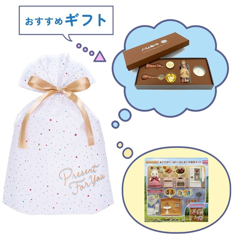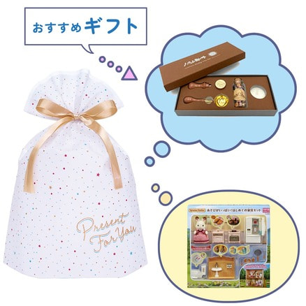 「PRESENT FOR YOU」のメッセージがプリントされたラッピングバッグです。