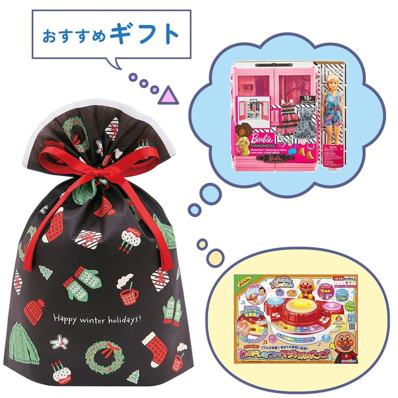 温かみのあるクリスマスモチーフのイラストを散りばめた、大人可愛いデザインのギフトバッグです。