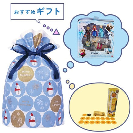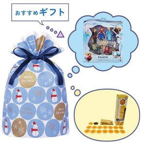 雪だるまと大きな水玉柄がインパクトのあるギフトバッグです。