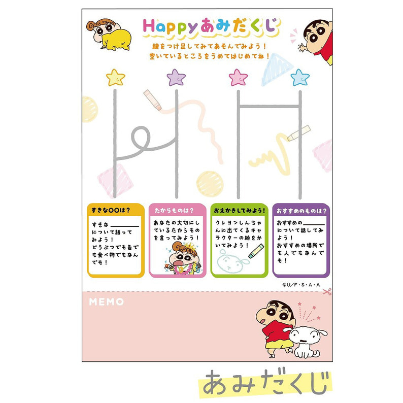 大人気アニメ「クレヨンしんちゃん」より、いろいろあそべるメモが登場! 塗ったりなぞったり、いろいろ遊べるメモ帳です。 ミニ封筒もつくれるよ! ●4柄×各25枚(計100枚) ●サイズ:W10.5×H14.8cm ●素 材:紙 ●生産国:日本