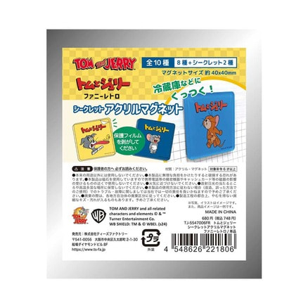 大人気トムとジェリーからアクリルマグネットが登場! こちらはコレクションにぴったりな【シークレットアクリルマグネット】 シークレット2種類を含む全10種類のうち1種類がブラインドパッケージに入っています。 ●商品サイズ:約W40×H40×D3mm ●素材:アクリル・マグネット ●原産国:中国 ※全10種のうちどれか1つがランダムに入っています。複数お買い求め頂いても同じ絵柄が続けて出たり、ご希望の絵柄が出ない場合もございます。また、絵柄が重複しましても交換依頼はお受け致しかねます。