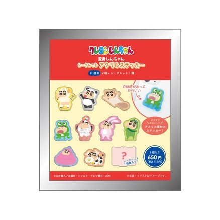 「クレヨンしんちゃん」からアクリルステッカーが新登場! 集めたくなる人気の変身しんちゃんシリーズ! クリアでかわいいアクリル素材のステッカーです。 ブラインドパッケージ仕様なので、なにが出るかは開けてからのお楽しみ♪ ●サイズ:W44×H44×D3mm ●素材:アクリル樹脂 ●原産国:中国 ※全10種のうちどれか1つがランダムに入っています。複数お買い求め頂いても同じ絵柄が続けて出たり、ご希望の絵柄が出ない場合もございます。また、絵柄が重複しましても交換依頼はお受け致しかねます。