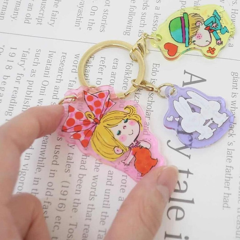 水森亜土の3チャームキーホルダーが登場! 3つのチャームが1つになったキーホルダーです。 チャームは取り外し可能なので、単体でもお使いいただけます。 ●商品サイズ:W34×H52×D3mm以内 ●素材:アクリル ●原産国:中国