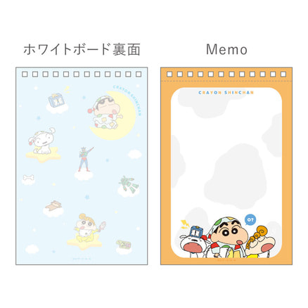 大人気クレヨンしんちゃんからホワイトボード付きスタンドメモが登場! 繰り返し書いて消せて、自立するので使いやすい。 表はリストライン付き、裏は自由に書けるデザインです。 【商品内容】 ・メモ(1柄)×30枚 ・ホワイトボードペン×1本 ・両面ホワイトボード仕様 ●商品サイズ:約W110×H165×D70mm ●素材:【ホワイトボード・メモ】紙 ●対象年齢:6歳以上 ●原産国:中国