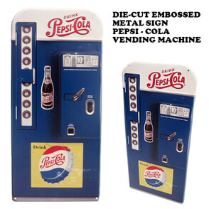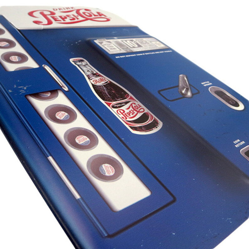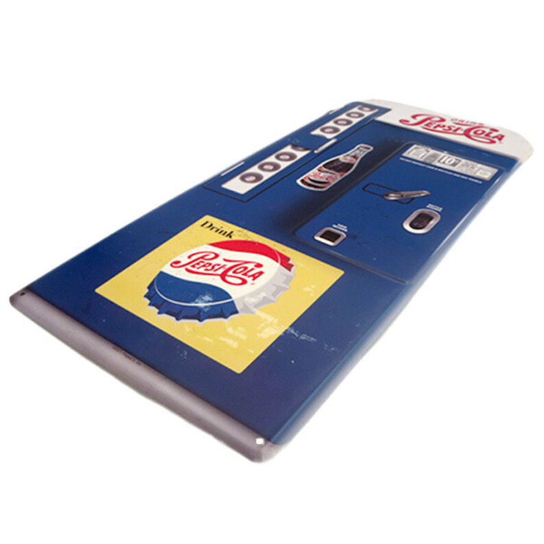 【PEPSI/ペプシ】のダイカットエンボスメタルサインプレートです♪ 昔のベンディングマシン(自動販売機)をモチーフにしたブリキ看板で、凸凹になっているのがカッチョイイ! サイズ感もGOODで、お部屋やガレージに飾れば、アメリカンなインテリアが演出ができちゃいます♪ 看板に穴が開いていますので、壁にかけたりすることも可能です! ●商品サイズ:W215×H460×D6mm ●素材:スチール製 ●原産国:中国