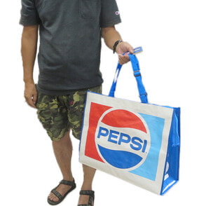 「PEPSI/ペプシ」からショッピングバッグが登場! バッグには大きくロゴがプリントされていてインパクト抜群です。 サイズも大きいので普段使いだけでなく、アウトドアにもオススメです! また機内持ち込みサイズなので旅行先でお土産を持って帰るのにベストなバッグになっています。 上部にファスナーも付いて、取っ手部分はアジャスターが付いているので、持ち運ぶのに嬉しい機能付き♪ ●商品サイズ:W410×H540×D200mm ●容量:40L ●素材:PP クロスバッグ ●耐荷重:20kg ●原産国:中国