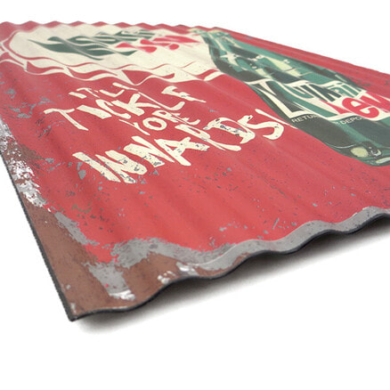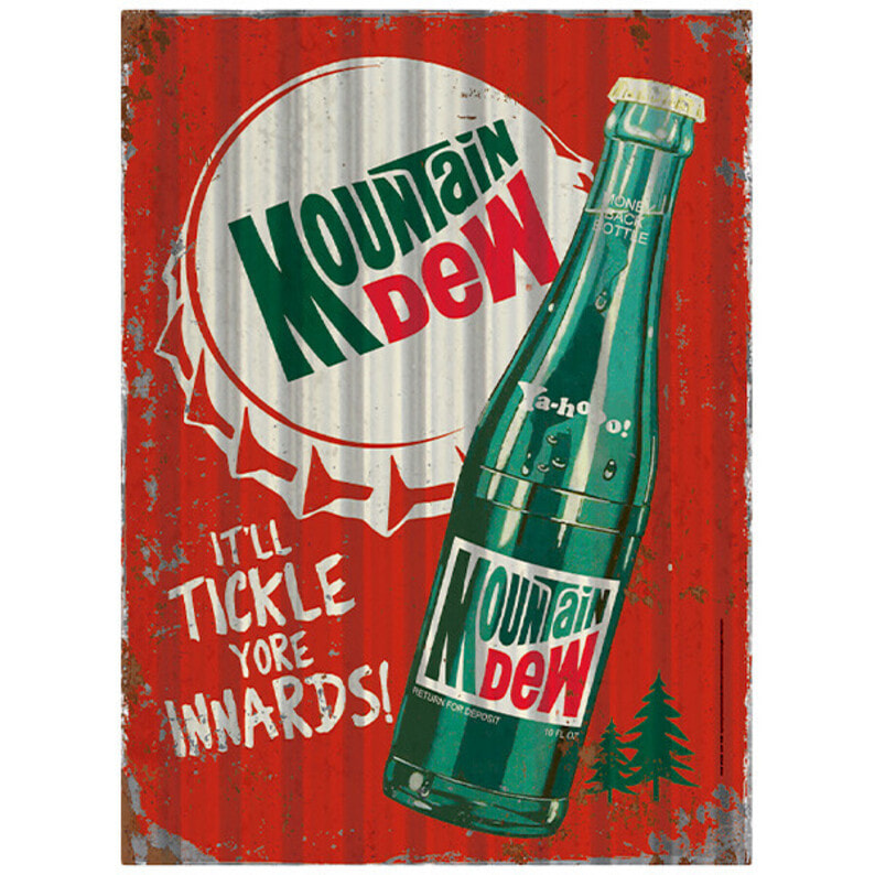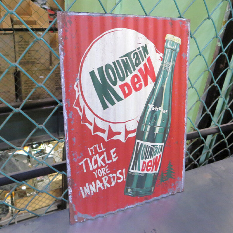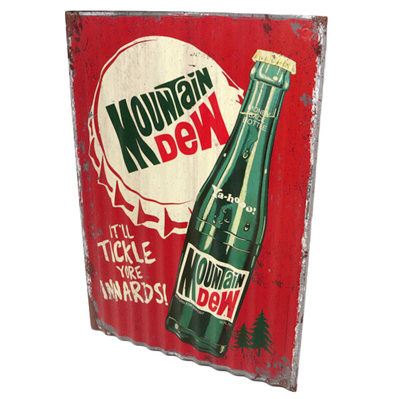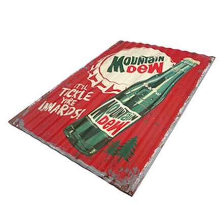 とたん板のようなナミナミの形状と材質のMOUNTAIN DEW マウンテンデューのコルゲートメタルサインです。 ダメージプリントと、ヴィンテージな感じのデザインがマッチしています。 お店やお部屋・ガレージのデコレーションにぴったりのアイテムで、ワンポイントあるだけで雰囲気が変わります。 ●商品サイズ:W285×H400×D5mm ●素材:メタル製 ●原産国:中国