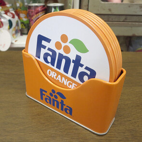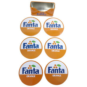 FANTAのロゴが入ったポップなデザインのコースターセットです! こちらは6枚セットとなります♪ コースター収納トレイも付いており、使わない時でもディスプレイとして活用できます。 繰り返し使えるのでとっても便利です。 こちらの商品はFANTA正規ライセンス品となっております。 【商品内容】 収納トレイ×1、コースター×6 ●商品サイズ:【コースター収納時】約W115××H107×D37mm【コースター】約φ102×H4mm ●素材:ブリキ ●原産国:中国