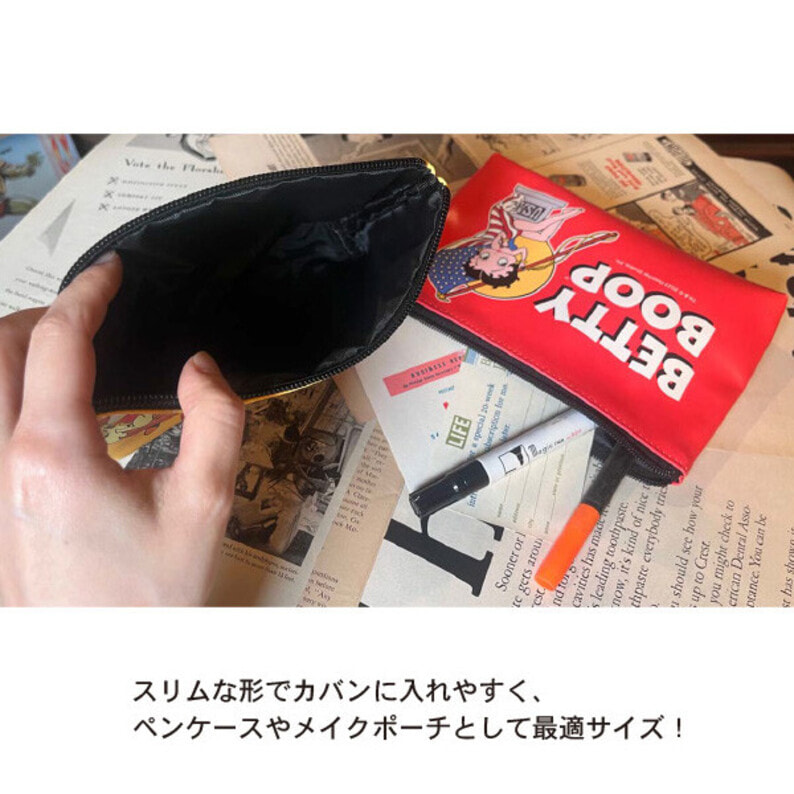 BETTY BOOPからスクエアポーチが登場! ベティブープのスクエア型の便利なポーチです。 スリムな形でカバンに入れやすく、ペンケースやメイクポーチなど、日常使いしやすいです♪ 両面異なったプリントにポップなデザインでとってもオシャレ! ●商品サイズ:W200×H130mm ●素材:PUレザー ●原産国:中国