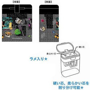 Minecraft(マインクラフト)から鉛筆削りが登場! 硬い芯、柔らかい芯を削り分け可能です。 ラメ入り仕様なのでキラキラでかわいい♪ ●商品サイズ:W41×H51×D29mm ●素材:PP、AS樹脂、スチール、スチロール樹脂 ●原産国:日本