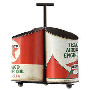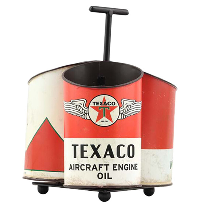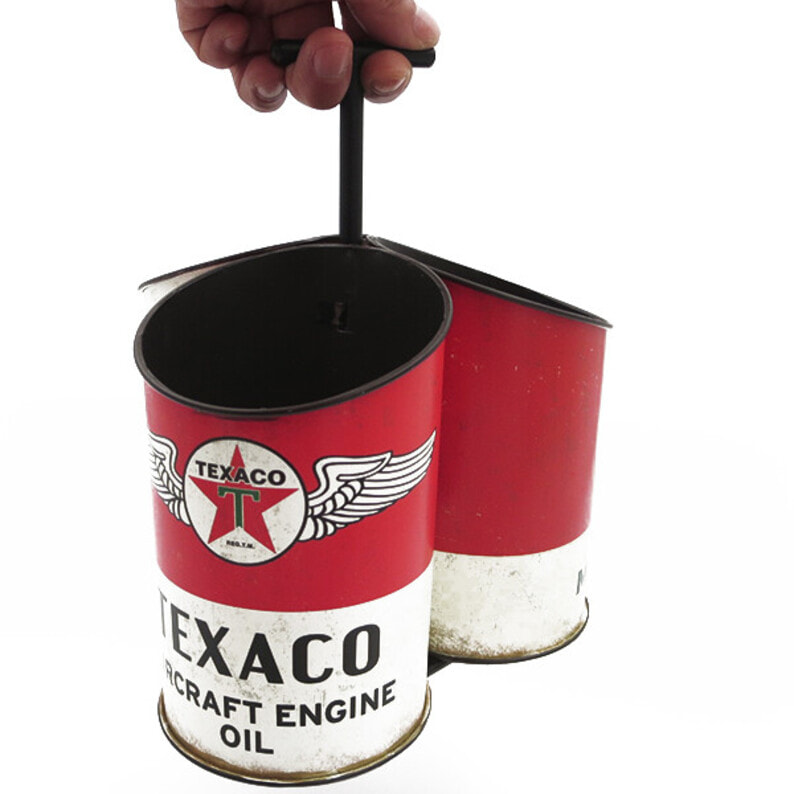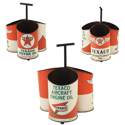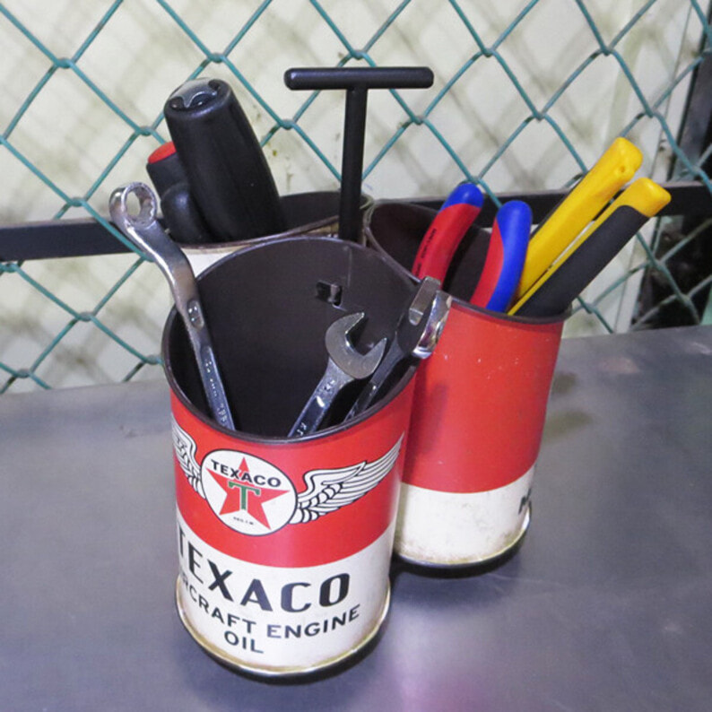 レプリカのテキサコオイル缶を3個つなげたユーティリティキャディ♪ 3個の缶のデザインもすべて異なっており、アンティーク風に仕上がっています! 持ち手も付いているので持ち運びも便利です。 ガレージの工具入れにピッタリですし、オフィスやお部屋の小物入れにも! アメリカンな雰囲気を出したいお部屋・ガレージにはバッチリのアイテム♪ ●商品サイズ:W180×H230×D180mm ●素材:ブリキ、スチール ●原産国:中国