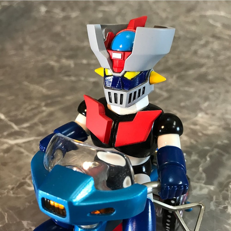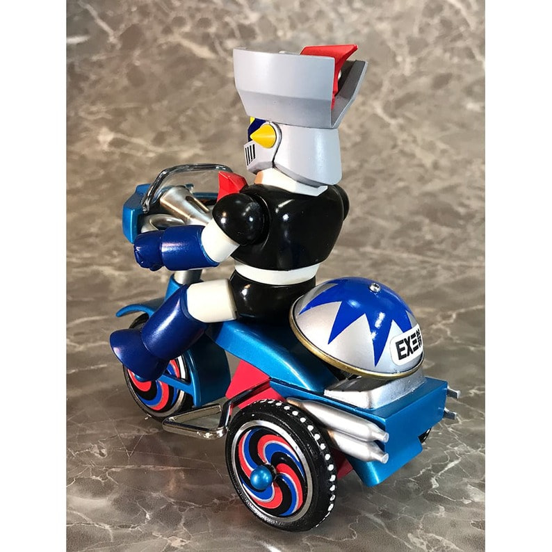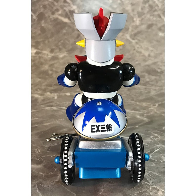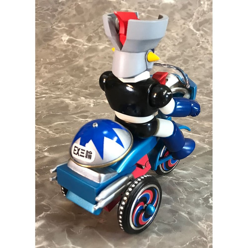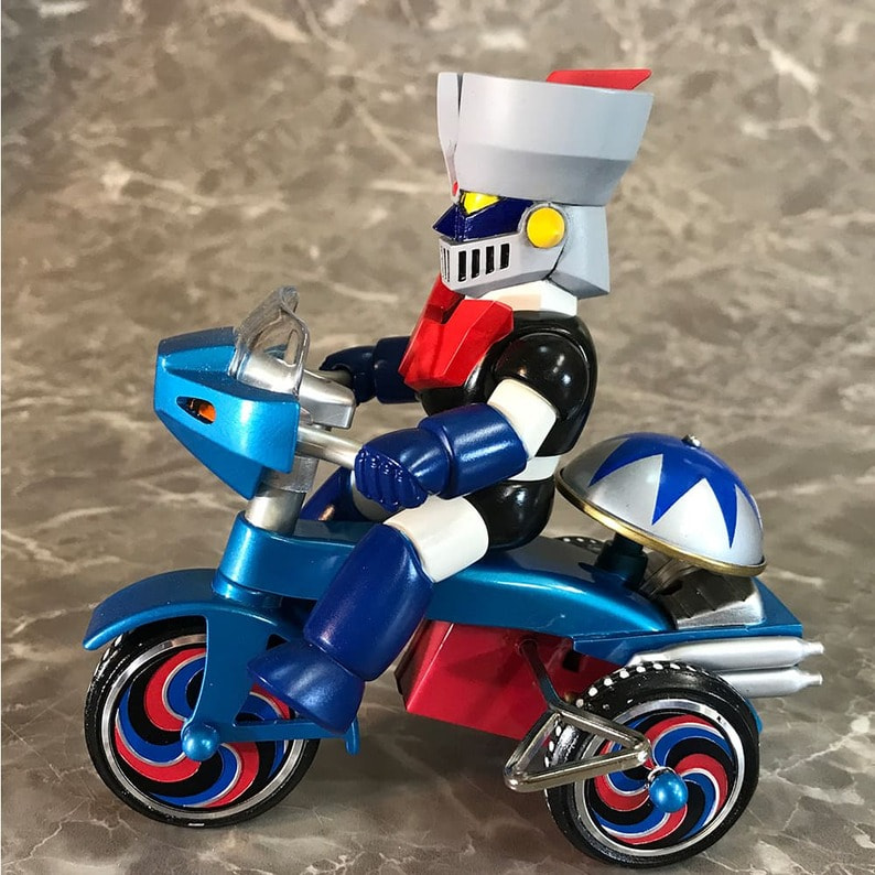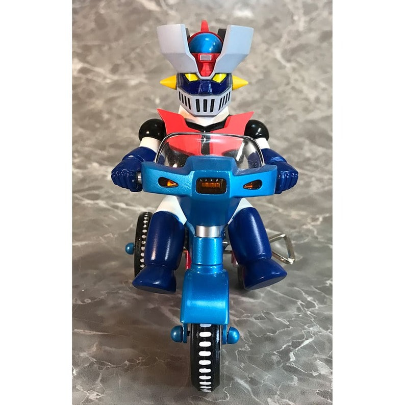 マジン・ゴー!! 「マジンガーZ」に登場するキャラクターたちが懐かしくレトロなゼンマイ式三輪車に乗ったソフビフィギュアが登場! キュートなデフォルメフィギュアながらも、そのキャラクターの特徴を手袋やブーツなど細部の造型で表現。 三輪車の本体、ホイールやおりん等もそれぞれのキャラクター用のカラーリング、そしてカウルやマフラーにライトパーツなど、細かい造形がファンを魅了します。 三輪車はゼンマイを回し走行が可能。車輪も可動。おりん部分がチリンチリンと音鳴ります。 前輪の角度を変えることにより、進行方向を変更できます。 ■製品仕様:ノンスケール・塗装済みゼンマイ式三輪車フィギュア(Bタイプ:フラグ無し) ■素 材:フィギュア/ソフトビニール 三輪車/ABS・ブリキ・鉄など ■サイズ:全長/約135mm 幅/約85mm 高さ/約125mm ■原産国:中国 ■対象年齢:15歳以上 ※実際の製品は仕様が異なる場合がございます。 ©永井豪/ダイナミック企画
