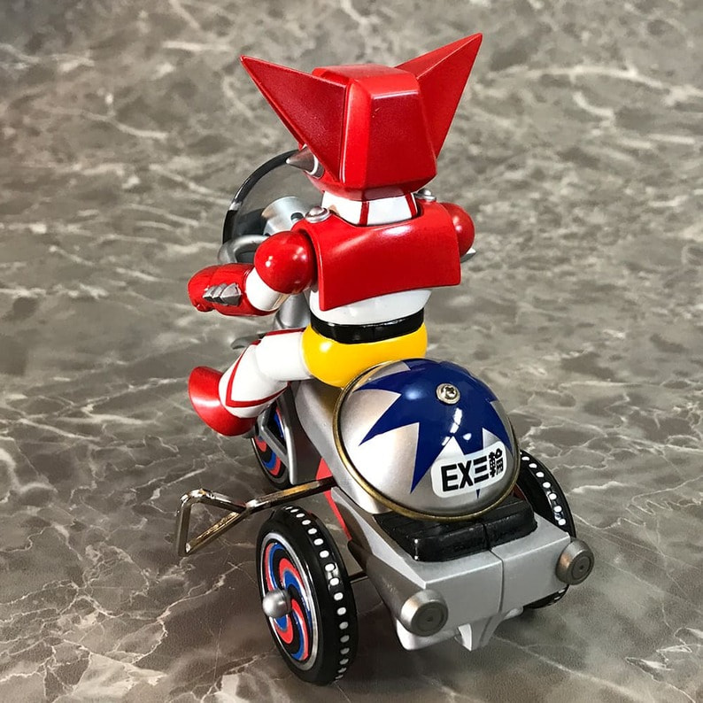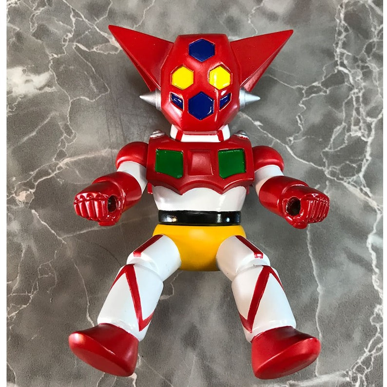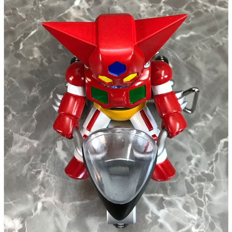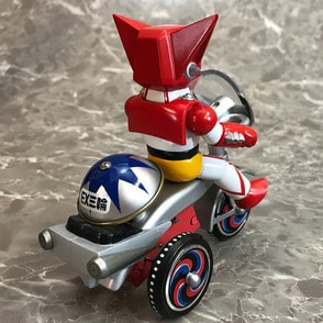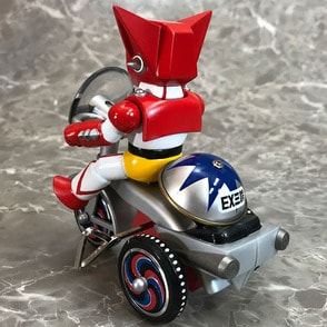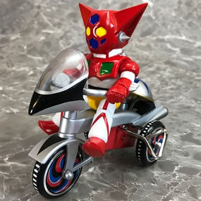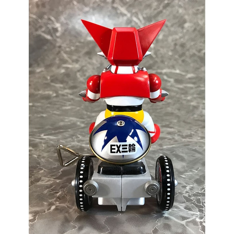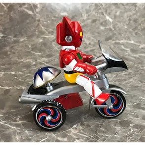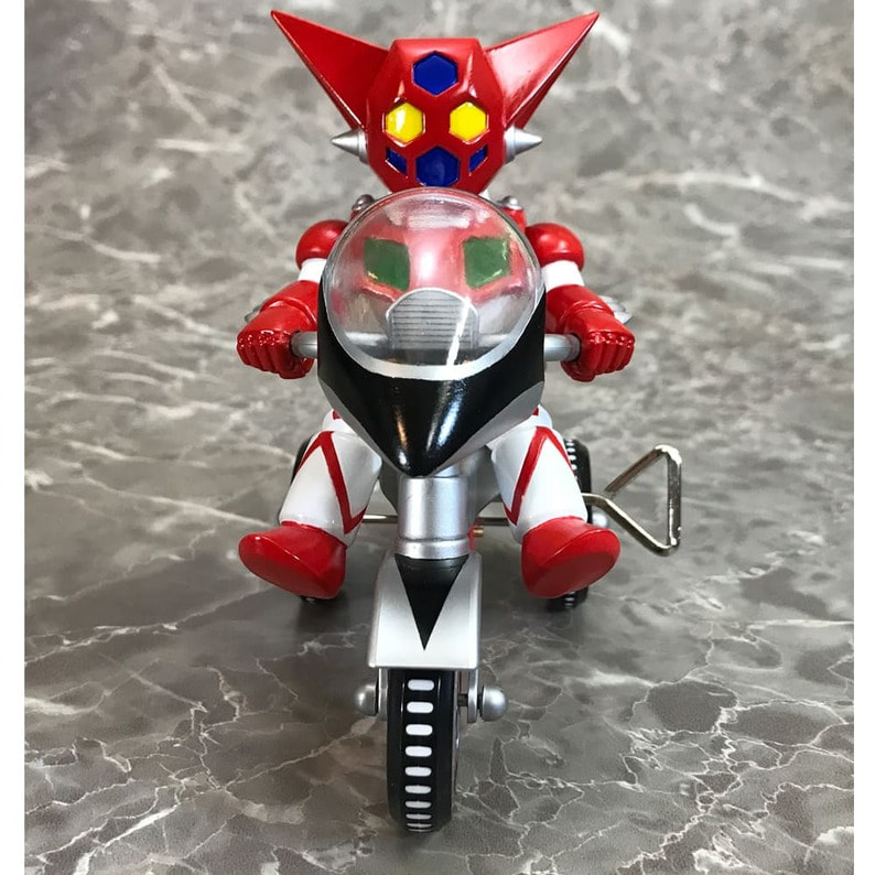 ゲッター!!チェンジ!! 「ゲッターロボ」に登場するキャラクターたちが、懐かしくレトロなゼンマイ式三輪車に乗ったソフビフィギュアで登場!! デフォルメもキュートなフィギュアながらも、そのキャラクターの特徴を細部の造型で表現。 流竜馬のヘルメットシールドはクリアパーツで再現。 三輪車の本体、ホイールやおりん等もそれぞれのキャラクター用のカラーリング、カウルやマフラーにライトパーツなど、細かい造形がファンを魅了します。 三輪車はゼンマイを回し走行が可能。車輪も可動。おりん部分がチリンチリンと音が鳴ります。 前輪の角度を変えることにより、進行方向を変更できます。 ■製品仕様:ノンスケール・塗装済みゼンマイ式三輪車フィギュア(Bタイプ:フラグ無し) ■素 材:フィギュア/ソフトビニール 三輪車/ABS・ブリキ・鉄など ■サイズ:全長/約130mm 高さ/約128mm ■原産国:中国 ■対象年齢:15歳以上 ※実際の製品は仕様が異なる場合がございます。 ©永井豪・石川賢/ダイナミック企画